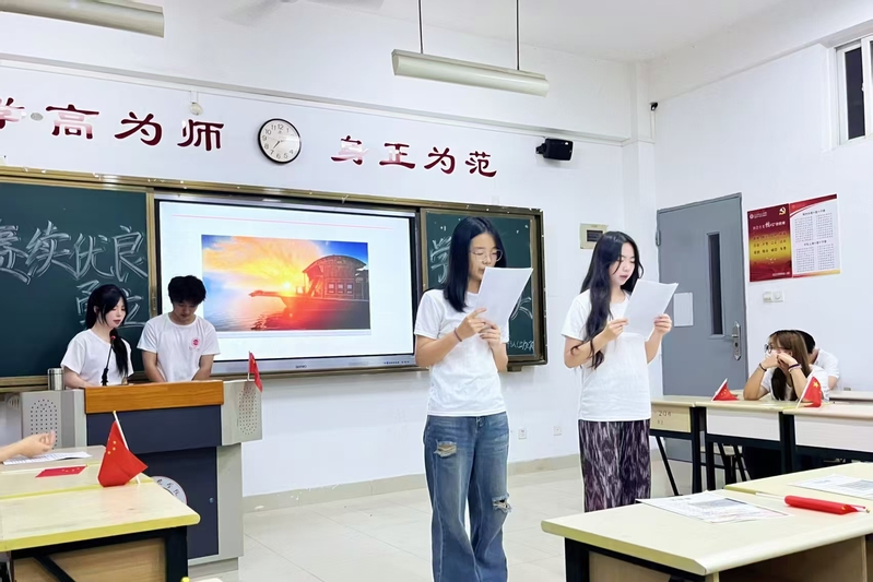 各班活动设置别出心裁,呈现形式丰富多样,引导同学们深入思考良好学风的重要性。24级广告班通过分享张桂梅与钱学森的感人事迹,生动诠释了学风建设在不同时代的深刻内涵;24级广告(闽台合作)班的“好学风建设”朗诵,借诗意场景引发学风之问,让同学们领悟学风新内涵,强化时代使命感;24级广播电视学(闽台合作)班献唱歌曲《闪耀》,激励同学们将奋斗精神融入学习生活中,将个人奋斗与时代使命紧密相连。