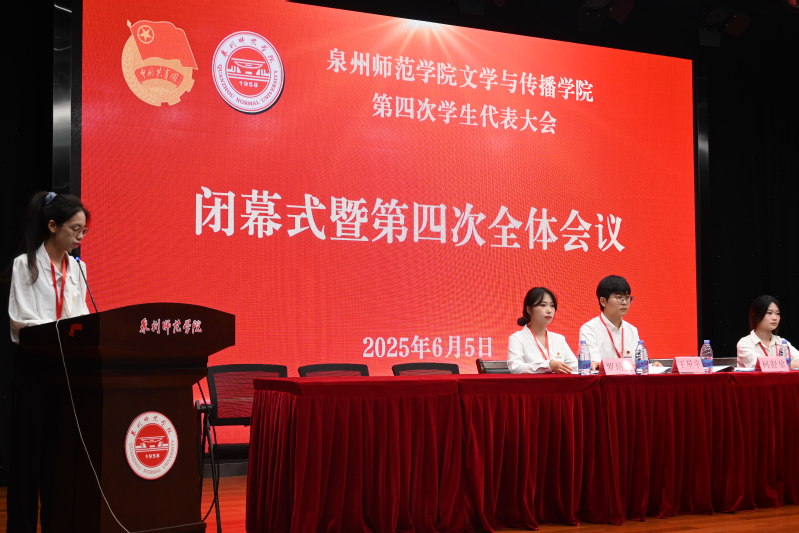 6月5日下午,英国威廉希尔公司官网文学与传播学院第四次学生代表大会在俊秀演播厅正式召开。文学与传播学院党委副书记林端民、各专业辅导员、校学生会主席团代表以及文传学院50名学生代表出席本次大会。