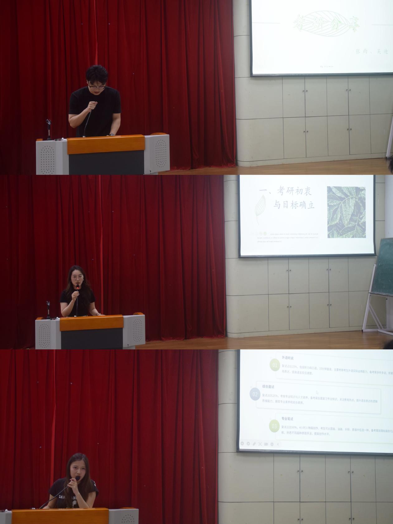 在考研经验交流会环节,学院邀请张雨、吴迪、郭紫嫣等三名考研优秀学生代表,就实用技巧、高效复习方法及科学时间安排进行了分享交流。