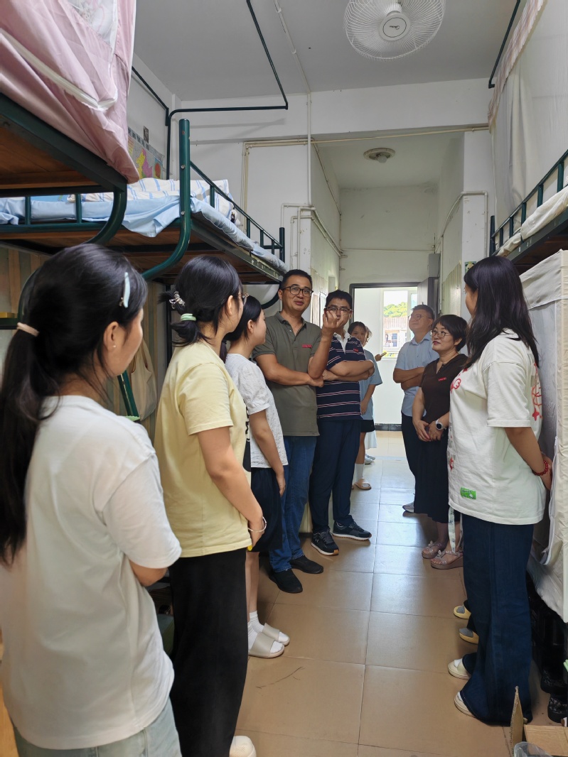 为深入了解2025级新同学的入学适应情况,传递学院关怀和温暖,9月13日下午,资环学院院领导带领三办主任、专业主任、辅导员走访学生宿舍,与新生面对面交流,送去学院的关怀与问候。