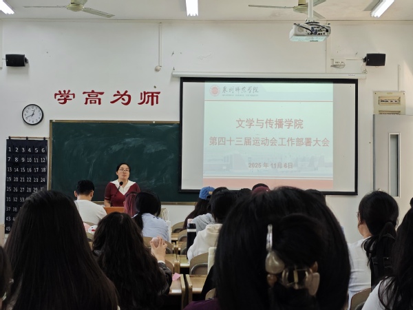 为全面统筹校运动会各项筹备与保障工作,确保赛事组织高效有序推进,11月6日中午,文学与传播学院于俊秀312教室召开第四十三届校运会工作部署大会。本次会议由学工办主任、团委书记陈燕红老师主持,各专业辅导员及学院两委各部门学生骨干参会。