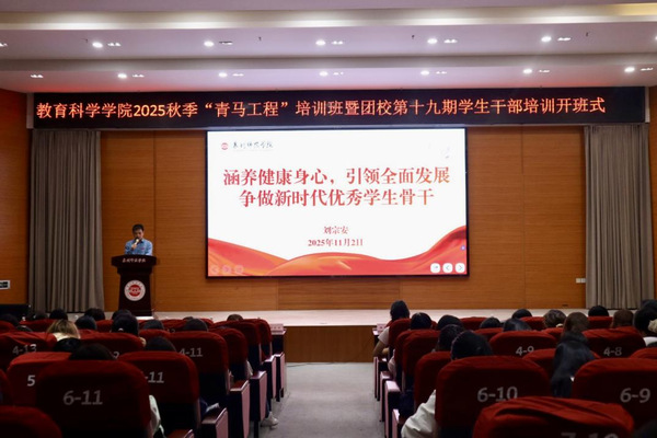 为深学细悟习近平新时代中国特色社会主义思想,全面落实习近平总书记关于青年工作的重要思想,深入学习贯彻党的二十大和二十届四中全会精神,发挥青年马克思主义者培养工程的育人功能,加强对青年大学生的思想政治引领,11月2日,教育科学学院2025年秋季“青马工程”培训班暨团校第十九期学生干部培训班于特教大楼第二学术报告厅正式开班。院党委副书记、纪委书记刘宗安,院团委书记林翠玲以及院团委全体老师出席本次开班式。