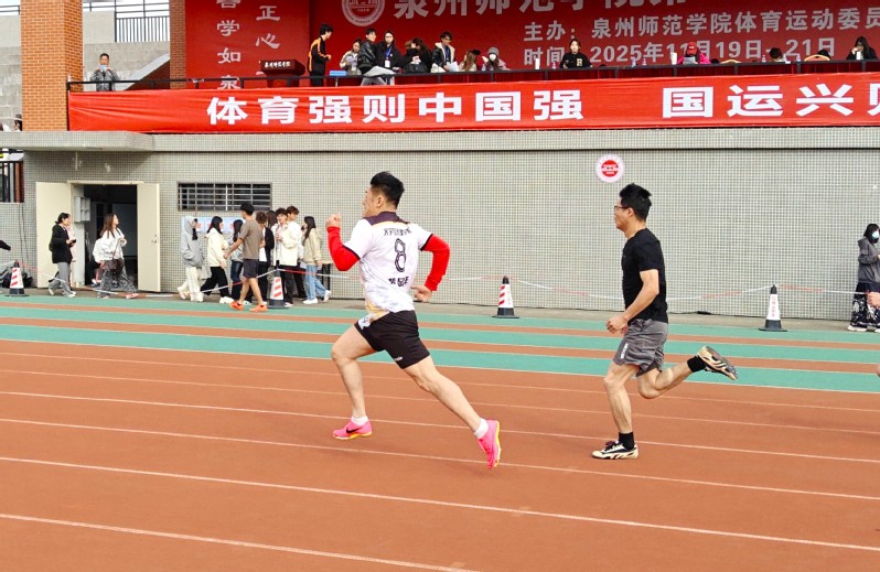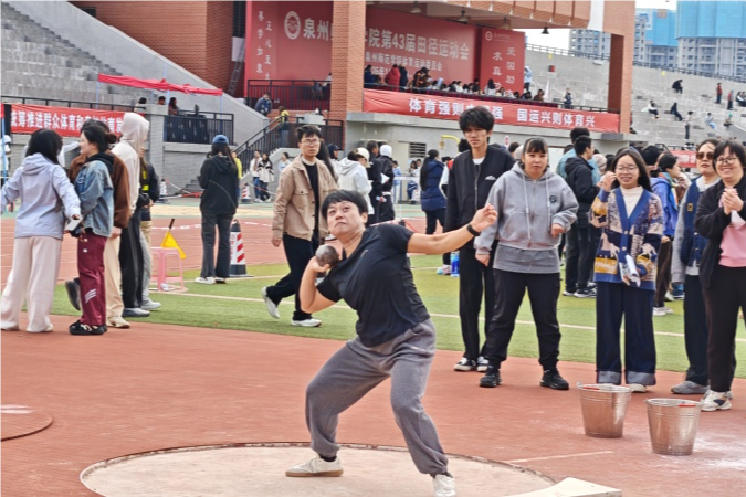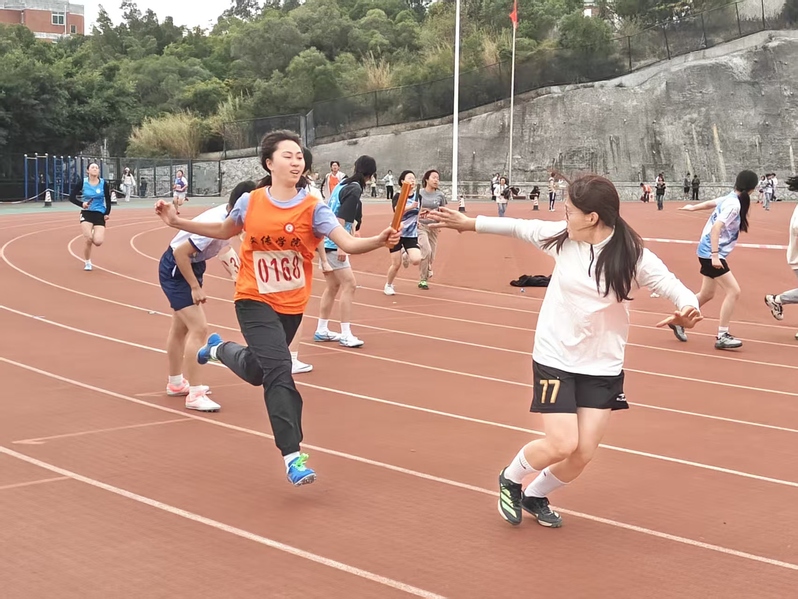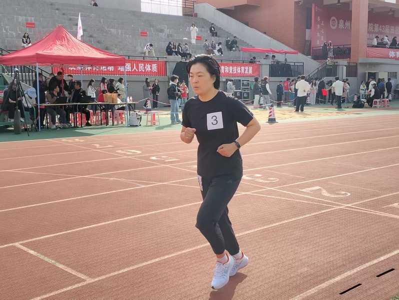 赛事首日,文传学院势头强劲。教工组里,邱慧芸老师包揽女子跳远与100米第一名;黄显洋老师在男子100米赛中夺冠;林建全、陈明丽老师分别在男子实心球和女子定点投篮项目获第三名。邱慧芸、洪艺瑜两位老师获羽毛球女双第二名。学生组中,郑舒怡同学在女子1500米决赛中获得第二名。