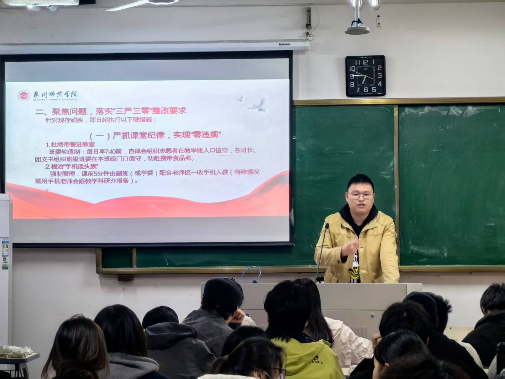 团委委员杨涛为团支部全体成员深入研读《习近平与大学生朋友们》,聚焦班级存在的问题,强化纪律教育,引导青年遵守校规校纪,从小事、细节做起,以实际行动助推班风学风建设。