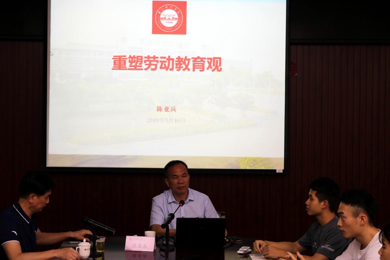 为深入学习贯彻习近平新时代中国特色社会主义思想和党的十九大精神,5月16日下午,副校长陈亚兵在陈伟利体育馆二楼会议室给体育学院学生第一党支部全体党员和入党积极分子讲授了一堂生动而富有教育意义的专题党课。党课主题为“重塑劳动教育观”。