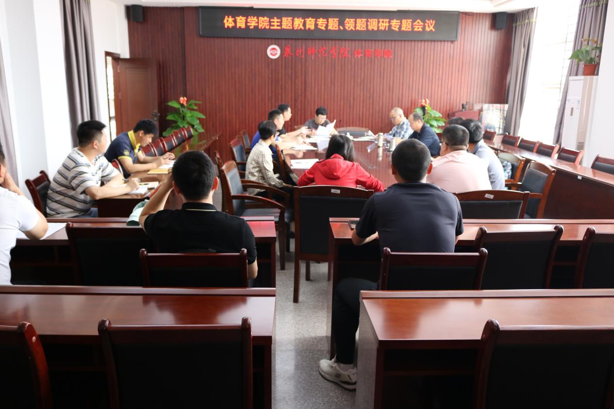 会议传达学习了福建省委办公厅印发的《关于在全省大兴调查研究的实施方案》和《中共福建省委教育工委关于在高校深入开展学习贯彻习近平新时代中国特色社会主义思想主题教育的指导意见》(闽委教组〔2023〕16号)关于调研工作的精神要求,研究制定了体育学院主题教育关于大兴调查研究的实施方案,并结合体育学院的实际情况对党委班子专项调研的课题和党委班子成员领题调研的内容做出安排部署。