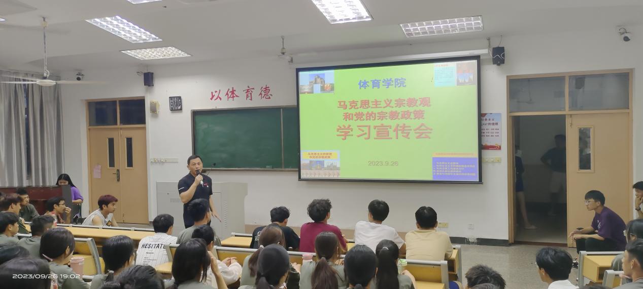 为深入学习贯彻马克思主义宗教观和党的宗教政策规定,引导大学生崇尚科学,树立正确的宗教观,9月26日,体育学院党委副书记、纪委书记李遵义为2023级新生开展马克思主义宗教观教育为主题的班会。全体辅导员、2023级全体新生及助班参加此次大会。