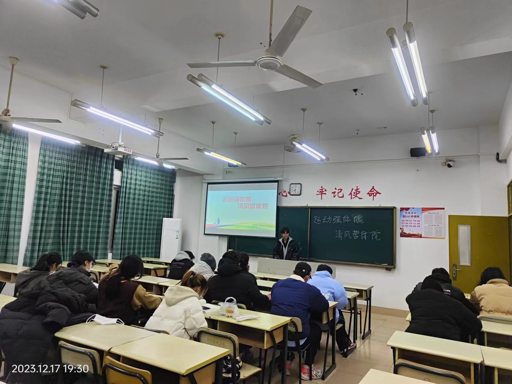 深入学习贯彻习近平总书记关于加快建设体育强国的重要指示批示精神,引导师生树立良好体育道德观念1217日,体育学院各班级组织开展主题为“运动强体,清风营院”主题班会活动