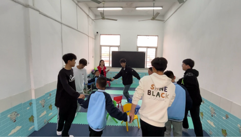 活动当天,团支部成员们来到爱心启能康复中心,他们虚心向康复中心老师了解孩子们的具体情况,并请教如何更好地与孩子们沟通交流。在院长的组织下,学生们分工合作,清扫教室、整理玩具,一对一地辅导残障儿童,为他们创造了舒适温馨的学习环境。尽管活动劳累,但学生们仍然乐此不疲,尽情奉献自己的爱心与力量。活动最后,学生们为康复中心的孩子们带来精心准备的儿童版舞蹈表演,一起进行游戏和简笔画创作。整场活动受到了康复中心孩子们的喜爱和院长的认可,在体育游戏的过程中,他们不仅锻炼了自己的身体,更促进了小朋友们的团队协作能力和心理健康发展,助力他们健康快乐成长。