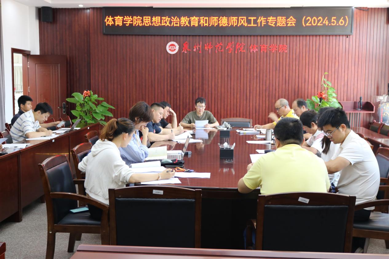 为深入学习贯彻习近平新时代中国特色社会主义思想和党的二十大、二十届二中全会精神,推动党纪学习教育往深里走、往实里走、往心里走,进一步压实师德师风建设主体责任,推进师德师风建设任务落到实处,5月6日上午,体育学院召开思想政治暨师德师风教育工作专题会议。学院党政领导班子成员,各科室、三办负责人、党委组织员、各党支部书记、辅导员参加会议。会议由院党委董清海老师主持。