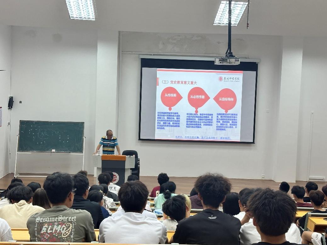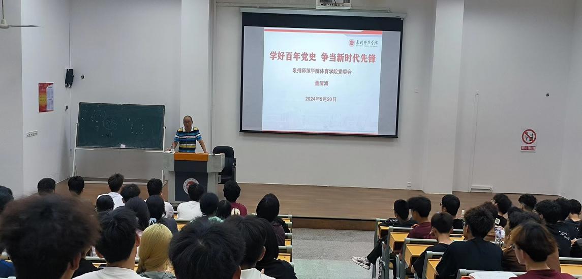 为深入学习贯彻党的二十届三中全会精神,切实肩负起立德树人的根本使命,引导广大青年积极向党组织靠拢925晚,体育学院党委负责人董清海老师中山报告厅五楼为全体2024级新生上了一堂“学好百年党史,争当新时代先锋”为主题党史学习教育党