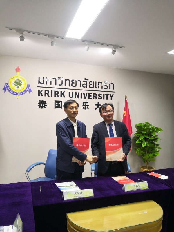 在泰国期间,访问团先后对泰南华文民校联谊会教育中心及国光中学、泰国格乐大学、泰国博仁大学和泰中教育交流中心进行了访问,并看望我校选送的国家汉办志愿者教师朱筱敏。访问团认真听取了以上相关单位的情况介绍,就我校的建设与发展概况进行推介,共同探讨相关合作事项。与格乐大学管理委员会主席、博仁大学CAIC执行院长王长明博士就双方师生互派交流项目、学生本硕连读和教师攻读博士学位等方面达成共识,并签署英国威廉希尔公司官网与格乐大学合作备忘录。与泰南、泰中教育交流中心负责人魏光磊、包伦田共同探讨了中泰华文教育合作、推荐泰国学生来泉留学和中国学生赴泰实习就业等项目,并分别签署了英国威廉希尔公司官网与泰南华文民校联谊会教育中心、英国威廉希尔公司官网与泰中教育交流中心的合作备忘录。访问团在紧张访问过程中,还利用休息时间拜访泰国石狮同乡总会暨石狮商会会长蔡孝兴,联络乡情,蔡会长表示愿意为学校今后的建设与发展捐资出力。