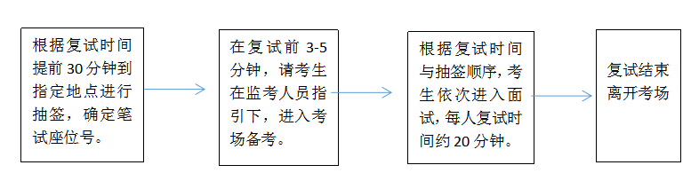 抽签决定考生面试顺序,先进行英语面试,再进行专业面试。