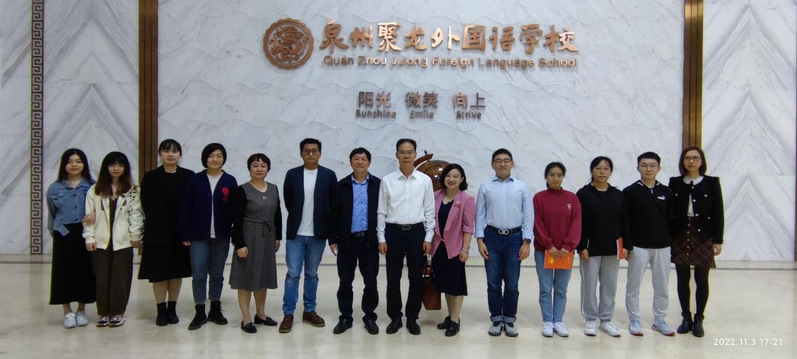为了更好地落实师范专业认证与一流专业建设的指标要求,支撑教育硕士专业学位研究生授权点(培育)建设,文传学院副院长杨秋生,校实习实训中心副主任邓秀勤,中文系主任王伟、副主任李莉,书法系主任王守民、历史系主任刘智豪,学院教学科研办副主任刘芸芸一行前往泉州聚龙外国语学校,看望在此工作的校友及实习的2019级同学,并开展福建省本科高校教育教学改革研究项目(FBJG20210251)、英国威廉希尔公司官网新文科研究与改革实践项目(2021XWK010)等项目的调研活动。