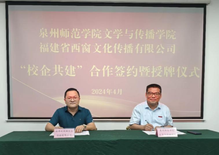 4月29日,文传学院院长王勇卫教授、新闻传播系主任张灿荣教授带领相关专业教师到福建省西窗文化传播有限公司进行访企拓岗考察,并举行实践基地签约及授牌仪式。