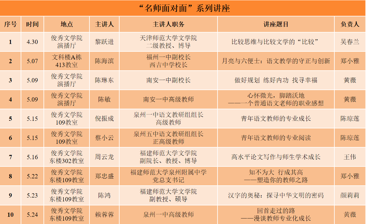 为了做好师范类专业认证中期审核“后半篇文章”,落实汉语言文学“省级一流本科专业”建设指标要求,助力教育硕士专业学位研究生授权点(培育)创建,文传学院中文系根据上级工作部署,在2024年5月期间连续举办十场“通往语文名师之路”系列讲座,共研共商“数智时代母语教育的中文学科支撑体系”,为在学研究生(含联合培养)、部分本科生(含第二学位)创造“名师面对面”的交流机会。