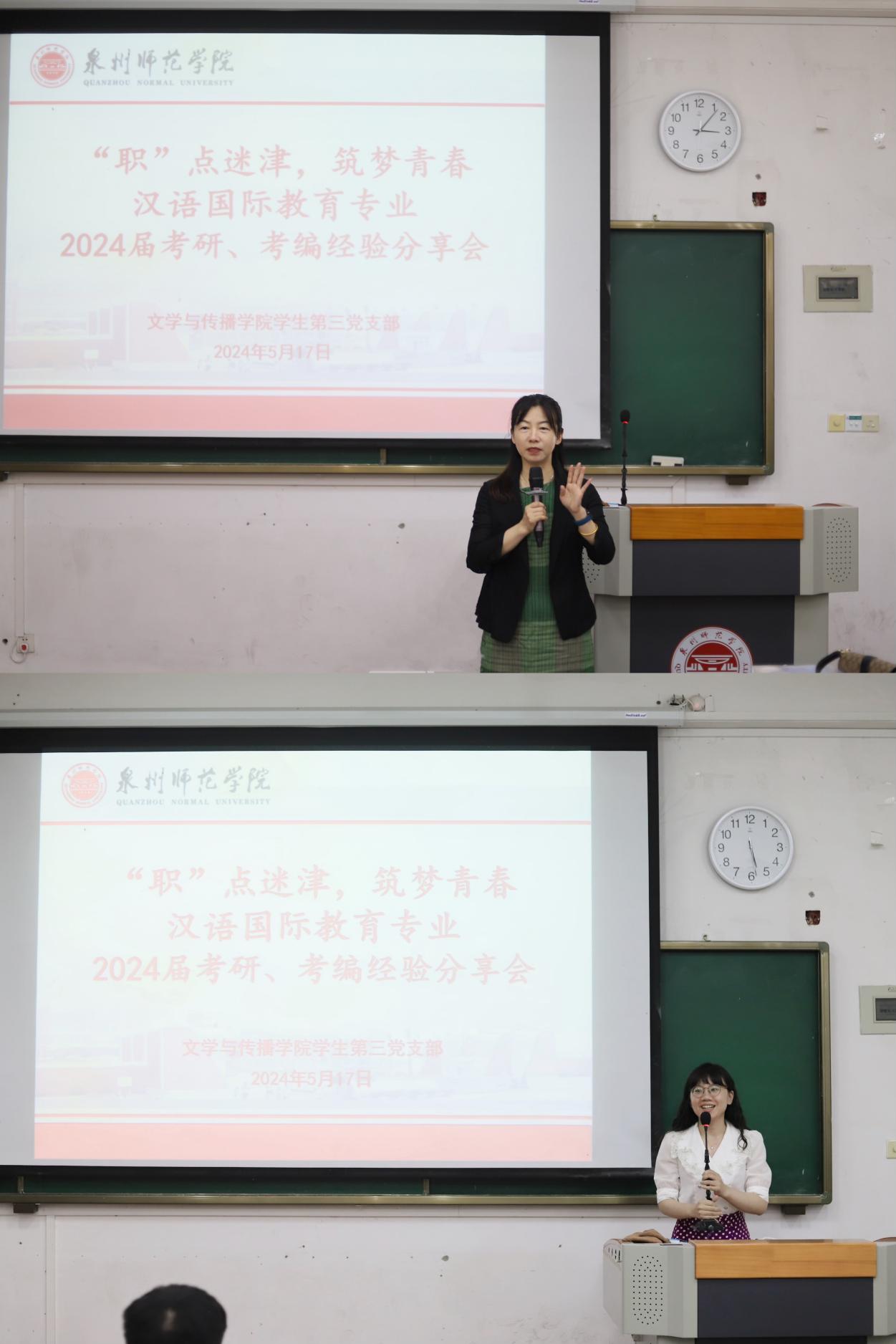 为增强专业凝聚力、传承成功上岸毕业生的经验,2024年5月17日下午,文学与传播学院学生第三党支部以“‘职’点迷津,筑梦青春考研”为主题,在俊秀东楼开展考研、考编经验分享会。