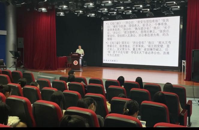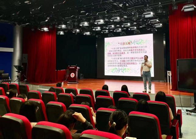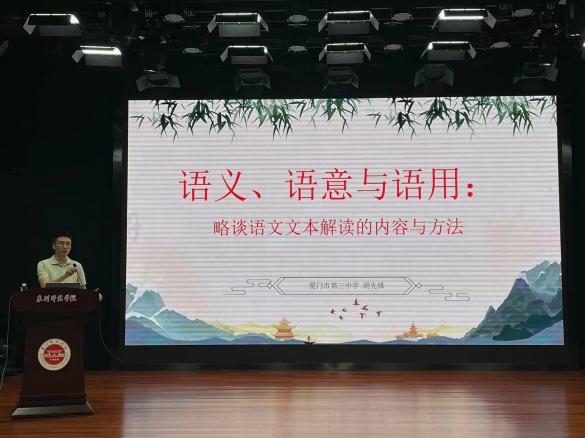 题为《语义、语意与语用:略谈文本解读的内容与方法的讲座中,胡先锋老师结合统编教材具体文本,从“借助语典做好语义训释,立足文本内外语境理解语意,面向学生阐释作家语用观念语用方法”等方面阐述“学生主体、教师主导、训练主线”的“三主范式并希望在场师生要重视培养文本解读能力。