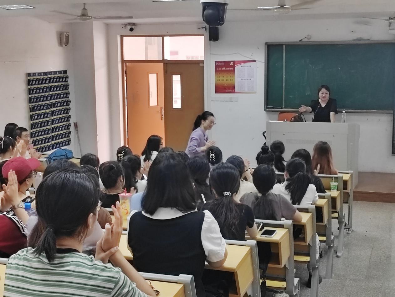 会上,曾多次指导“国赛”“省赛”的陈琼莲博士受专业负责人委托,以《树立信心,把握机会,争创一流》为题,简要通报暑期特训情况,并结合自身经验,详细解读文件关于“时间进度、大赛内容、选用教材(课程资源)”等方面的规定。其动情地指出,今年属于“主场作战”,大家一定要秉承“语以塑心,文以化人,美以筑梦”系训精神,在全省同行面前展示泉师中文“硕本中小贯通,文史哲艺汇融,课岗赛证一体,产学研用结合”的办学成效!