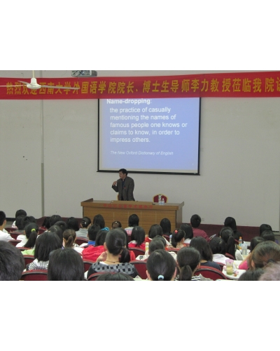 426日下午,英国驻华大使馆文化教育处英语教学顾问、教育部高等学校外语专业教学指导委员会委员、西南大学博士生导师李力教授莅临外国语学院,在孙中山礼堂第一学术报告厅为该院师生带来了一场题为《狗、孔子、海德格尔和猫——从一堂小学英语课引起的另类思考》的讲座。该院领导、部分师生听取了讲座。