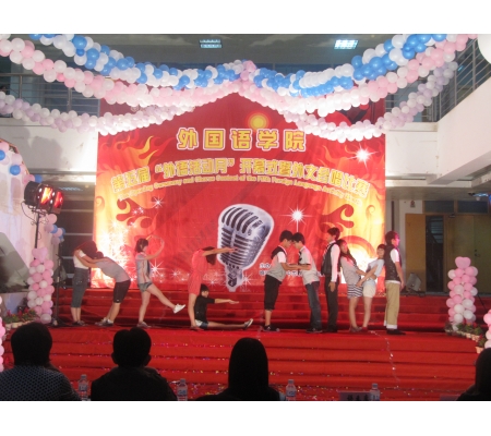 为提高学生学习外语的兴趣和综合运用外语的能力,5月14日晚,外国语学院第五届“外语活动月”开幕式暨“班班有歌声”外文合唱比赛在荣茂楼一楼大厅隆重举行。校党委宣传部部长、学院党政领导出席开幕式。