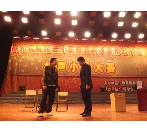 小品《同学会》中,表演者以幽默的台词和纯熟的演技将人物刻画得栩栩如生,将条块化的法律知识演绎得平易近人,令人喜闻乐见,表演风趣又不失深刻,引来观众们的热烈掌声。而相声《有钱人》表演中,我院两名女将更是配合默契,语音清晰流利。据现场亮分排名,我院的《同学会》获校第十名。