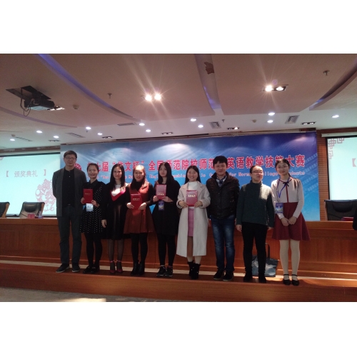 本届大赛由教学设计文稿、“说”片段教学设计思路、模拟授课、现场答辩四项内容构成。在蔡岚岚、单斐娴和曾旭暾老师的指导下,外国语学院的陈文获教学技能一等奖,熊爱金、王江玲获二等奖,谢艺芳、丘露薇获三等奖。另外,丘露薇、谢艺芳和王江玲还获得教学设计一等奖。由于组织突出和效果良好,我校还荣获“组织奖”。