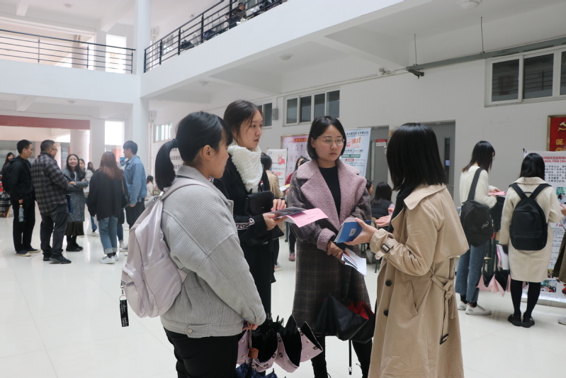 招聘会现场,各个企业HR为同学们介绍公司具体情况,由于前期宣传准备充分,同学们对感兴趣的公司已有大致的了解。值得一提是,各公司代表所准备的详实的介绍内容及图文并茂的宣传材料使得同学们对企业人才招聘要求及企业管理模式有了更加深入的解读。与此同时,负责人也为同学们介绍了具体的入职门槛,面试笔试以及入职等详细流程。一场兴味盎然的招聘会在外国语学院成功举行,同学们踊跃参加,积极向相关岗位咨询,并在专业人士的指导下得到了自己想要的答案,对未来的就业发展有了更加明晰的方向。招聘会也吸引了许多大二、大三同学前来观摩,推动学生提前树立就业意识,做好学业和职业规划。