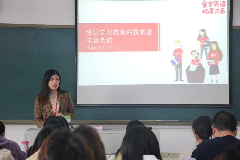 12月12日下午,快乐学习教育科技集团在外国语学院进行校园招聘。此次招聘会出席主讲人为集团HR经理郭颖及佳音英语市场总监李炜,2016级毕业生参加此次招聘会。