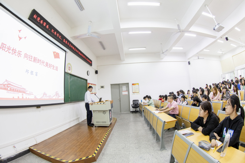 日前,校党委常委、纪委书记、监察专员邱银富先后为外国语学院师生上思政课,学院党政领导班子成员、全体教职工及学生代表参加。