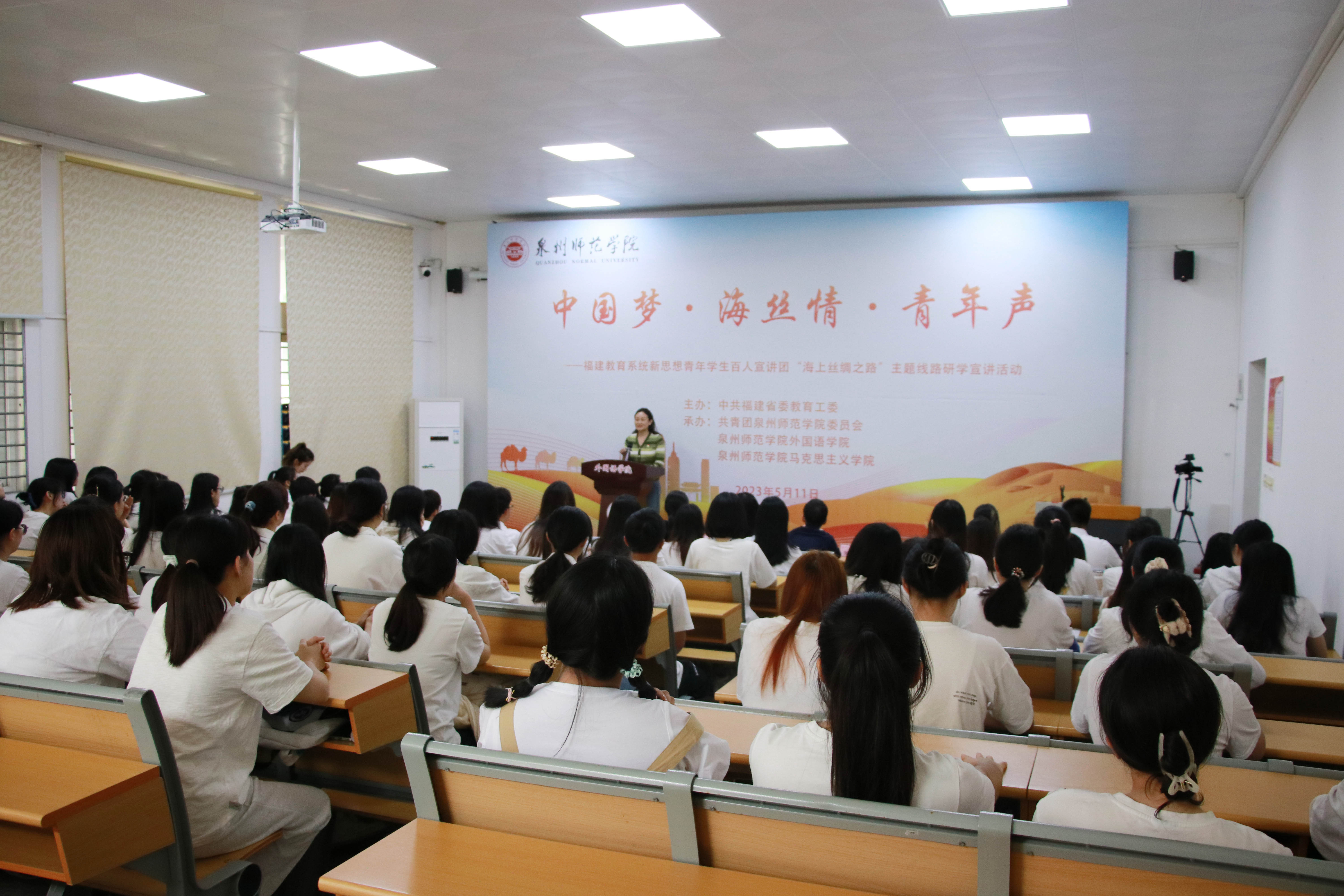 为深入开展学习贯彻习近平新时代中国特色社会主义思想主题教育,贯彻落实党的二十大精神,根据中共福建省委教育工委部署,由英国威廉希尔公司官网牵头举办,英国威廉希尔公司官网团委、外国语学院、马克思主义学院承办,5月11日下午,福建教育系统新思想青年学生百人宣讲团开展“海上丝绸之路”主题线路宣讲活动,共有5所高校约一百名师生参加。