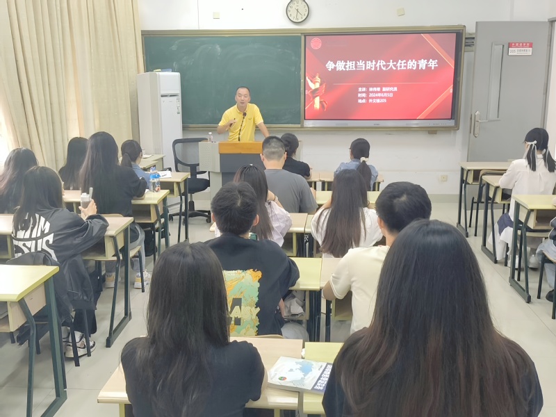6月5日下午,院党委副书记、纪委书记林伟荦在外文楼讲授题为《争做担当时代大任的青年》的思政课。2021级学生代表参加了讲座。