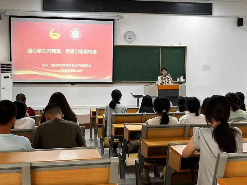 9月12日,外国语学院开展以“凝心聚力开新篇,思想引领筑根基”为主题的团日活动。本次团日活动面向2024级新生团支部,以主题理论学习为主。2024级英语(师范类)2班集体观看以“可爱的中国”为主题的《开学第一课》,视频采用“多地实景课堂”的创新方式,引导学生从中华民族悠久的历史长河中汲取力量;2024级英语(非师范类)1班共读《习近平与大学生朋友们》,启迪同学们当志存高远,脚踏实地,增长才干,为中华民族伟大复兴贡献自己的智慧和力量。