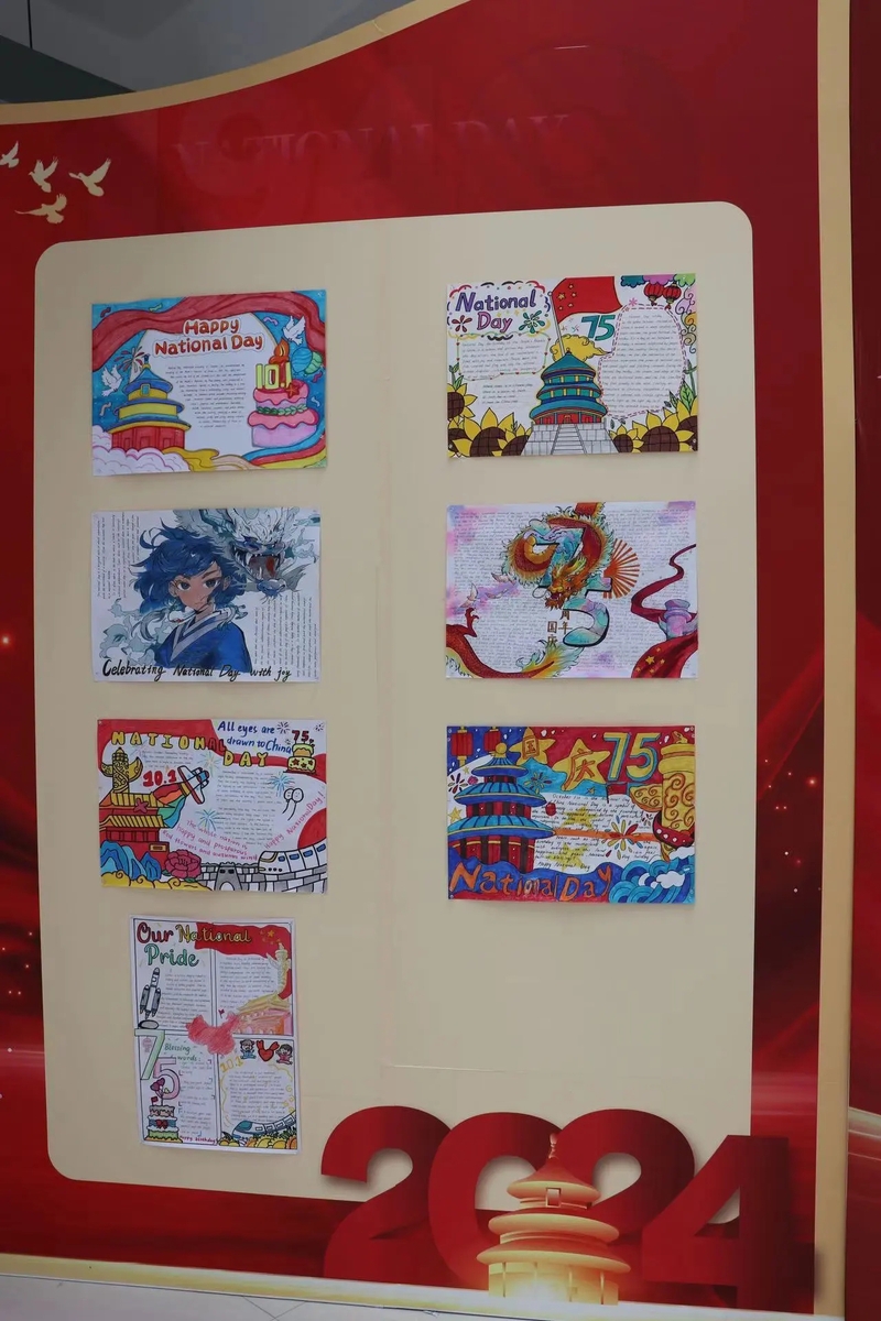 9月20日至10月10日,外国语学院举办“青春献礼新中国,奋楫扬帆谱新篇”国庆系列活动,庆祝新中国成立75周年。活动将专业特色与国庆主题巧妙融合,涵盖书法艺术、手抄报设计以及手工艺制作等多个方面。以翰墨飘香迎华诞、以丹青映彩庆华章,寓言于物、明志寓情,让“花式”劳动课走入学生心田。9月28日,筛选30幅书法、手抄报优秀作品于外国语学院二楼大厅进行了展出,吸引了众多师生驻足观赏。