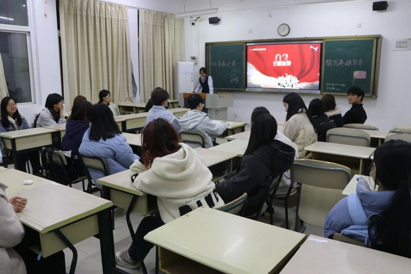 本次团日活动旨在缅怀革命先烈,弘扬红色精神。24级英语(非师类)1班观看了红色纪录片,带领同学们重温不同历史时期英烈的感人事迹,现场设置的“时空对话”环节引发强烈共鸣。24级商务英语2班组织了“我对英烈有话说”互动环节,加深了同学们对新时代英雄精神内涵的理解。24级商务英语1班分享了革命英烈和抗日英雄的事迹,启发学生思考新时代青年的使命担当。