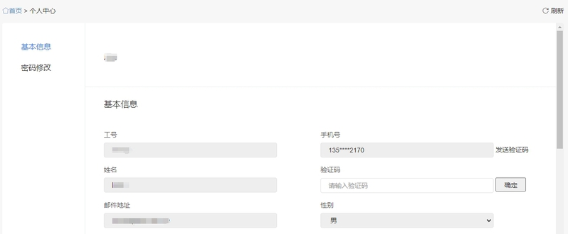 登录统一身份认证系统后,点击右上角个人中心,可自助修改密码、修改手机号。