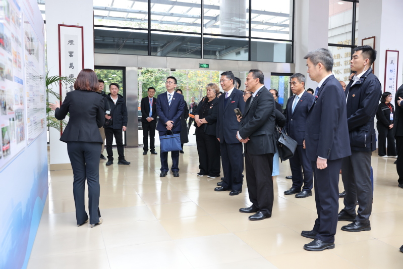 阿伦·帕利克副总统一行兴致勃勃地观看了学校与太平洋岛国开展交流合作的成果展和纪实视频。陪同期间,柯瑞清、陈昌萍简要介绍了学校办学情况,回顾学校自2015年开始招收密克罗尼西亚联邦留学生的情况。