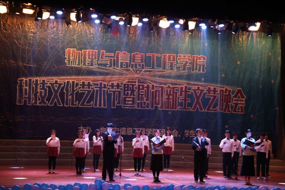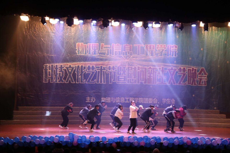 12月24日晚上7:00,物理与信息工程学院科技文化艺术节暨慰问新生文艺晚会在陈祖昌大礼堂隆重举行。晚会上演节目丰富多样,最终圆满落幕。