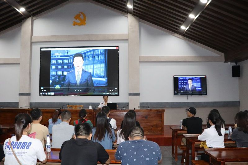 全体师生党员集中观看《习近平带领新一届中央政治局常委瞻仰上海中共一大会址和浙江嘉兴南湖红船》视频,感受“红船”展示出的革命精神。
