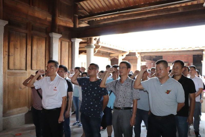 在旧址大厅,陈晏辉带领大家面向鲜红的党旗,高举右拳,重温入党誓词,誓言坚定,铿锵有力,展现了全体党员坚定的政治信念,表达了“不忘初心、牢记使命”的决心。