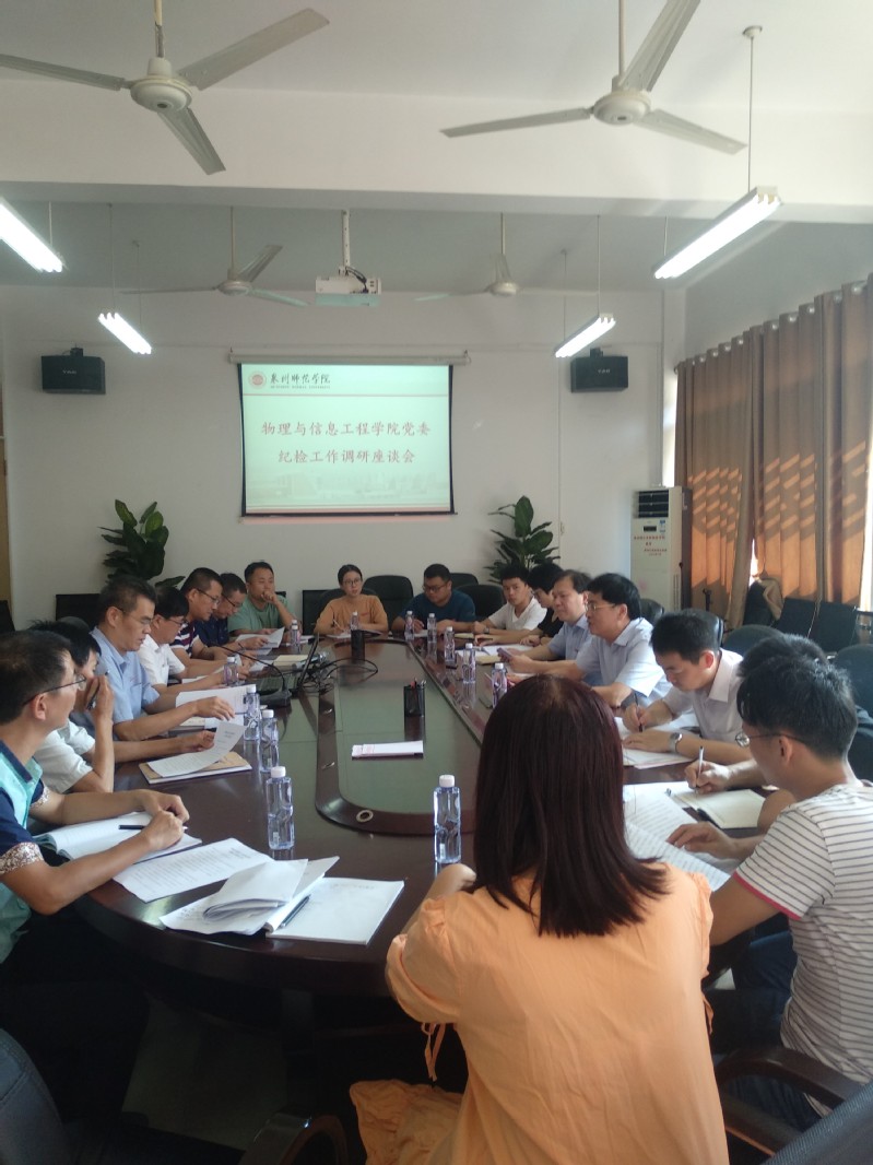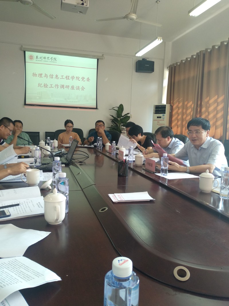 根据学校“不忘初心、牢记使命”主题教育安排,10月10日上午,校党委常委、纪委书记邱银富一行到物信学院开展二级党委(党总支)纪检工作专题调研,物信学院党政领导、科级以上干部、党支部书记、教师代表、学生代表等参加了调研座谈会。