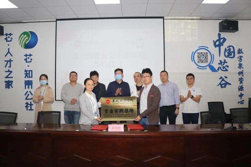 会上,我院教师黄启禄副教授与泉州三安半导体科技有限公司人力资源部代表谢娟娟在中国芯·孵化基地二楼会议室举行“校企共建社会实践基地”签约仪式。