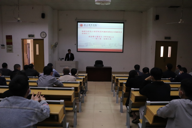 观看结束后,院党委副书记、纪委书记洪荣文在总结讲话中强调:一要以反面典型为镜鉴,坚守党性原则,树立正确的世界观、人生观、价值观;二要牢记育人使命,干事创业敢担当,养成德高为师、身正为范的信念;三要牢记为民宗旨,为民服务解难题,挑起为学院发展和服务师生的责任担当。此次活动是我院开展党风廉政建设宣传月活动之一。
