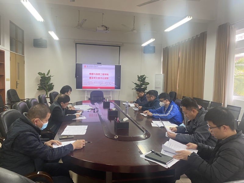 3月30日,物理与信息工程学院召开2022年度党支部书记抓党建工作述职评议会,学院党委委员和各党支部书记参加会议,会议由学院党委书记吴丽双主持。