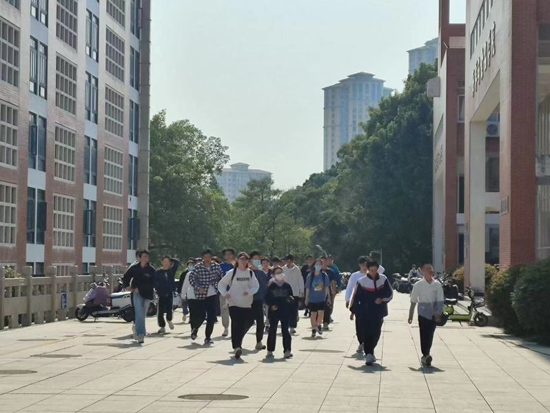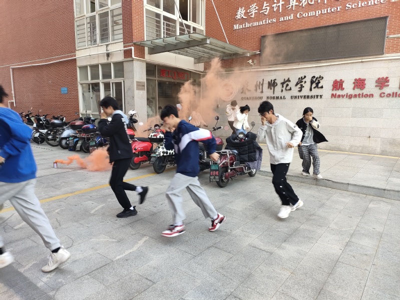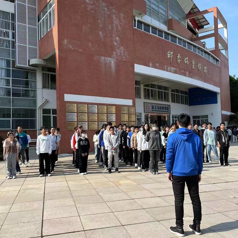 演练前,朱春怡强调了消防安全的重要性,并提供物资支持和细节指导。铃声响起后,全体学生从理工楼三楼紧张有序地顺着一号门疏散而下。面对门口的烟雾,同学们穿过时均捂住口鼻、摒气低腰、迅速通过。随后,在工作人员的指引下,全员集合在邱季端实验楼前的空地上。整个疏散过程历时三分钟,做到安全、快速、有序。演练结束后,黄祖榜对此次活动作了总结,引导同学们更加重视消防安全。