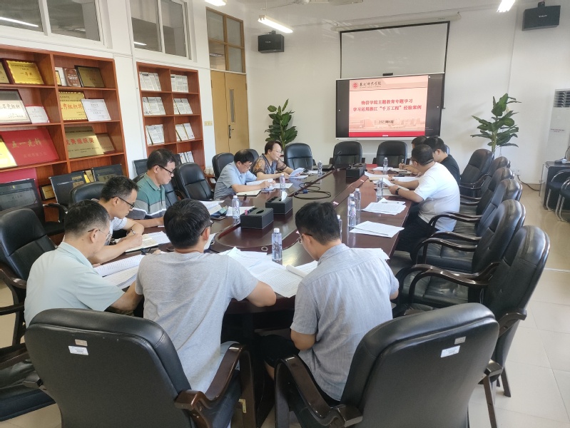为推动学习贯彻习近平新时代中国特色社会主义思想主题教育走深走实,提升党员干部的党性修养和履职能力,2023年6月26日下午,我院在理工208会议室召开主题教育专题学习会,围绕深入学习运用浙江“千万工程”经验案例开展集中交流研讨。学院党委书记吴丽双、院长杨惠山、党委副书记洪荣文、副院长陈木生,科室负责人及党支部书记参加。
