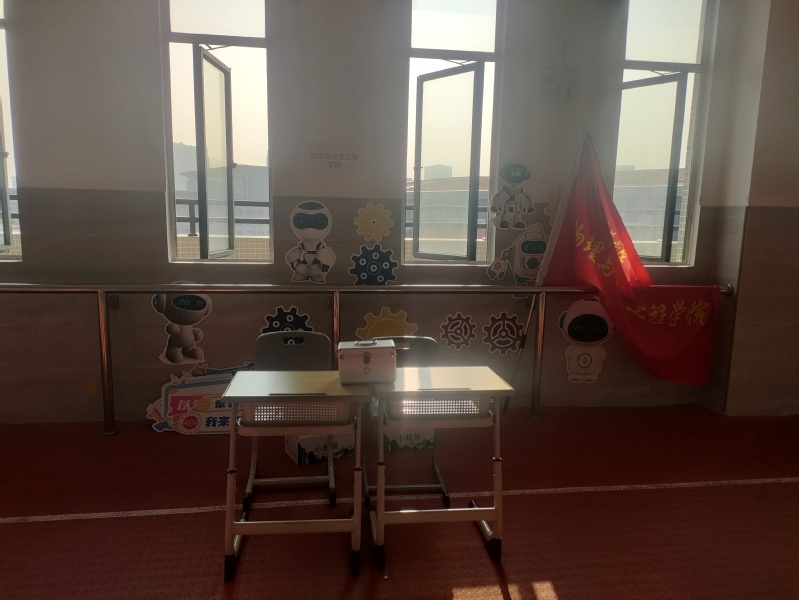 同时,我院布置了一个充满创意与活力的大本营。墙边摆放院旗和展板,展示学院的文化和特色;座位上配备常用药品,可供新生们休息调养;大本营提供饮用水,确保新生在军训过程中能够及时补充水分。