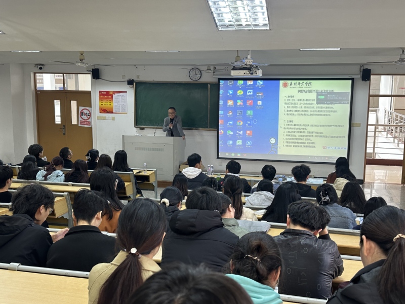 招聘会伊始,三家企业代表依次上台进行宣讲。上海互觉科技有限公司代表介绍了智能交互领域的前沿技术和创新成果,泉州力同科技有限公司代表分享了新能源材料研发和应用方面的经验,福建方程仕未来教育咨询有限公司代表则就教育领域相关工作岗位的职业发展进行了深入讲解。各企业代表通过PPT展示和案例分析,向学生们介绍了公司的业务范围、发展规划、招聘岗位及薪资待遇等内容。