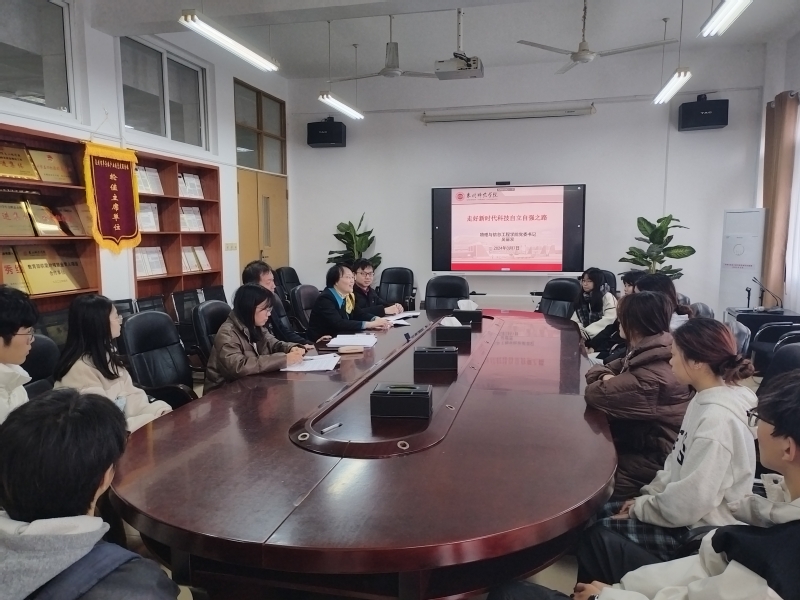 2024年3月7日下午,我院党委书记吴丽双在理工208会议室为学生上主题为“走好新时代科技自立自强之路”的思政课。院党委书记吴丽双、院党委副书记洪荣文、辅导员及部分学生代表参加会议。