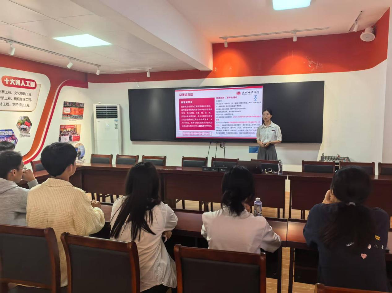 宣讲会上,薛君梅老师深度解析资助政策的育人内核与实施逻辑。她系统整合国家奖学金、国家励志奖学金、校内奖学金、国家助学金、助学贷款等政策文件,通过结构化讲解各资助项目的申请条件、评审标准与实施流程,为家庭经济困难学生勾勒出清晰的资助支持体系。特别针对经济压力与学业发展的联动关系,她深入阐释资助政策在缓解生活负担、释放发展动能等方面的叠加效应,引导学生将政策支持内化为学业奋进与能力提升的成长动能。